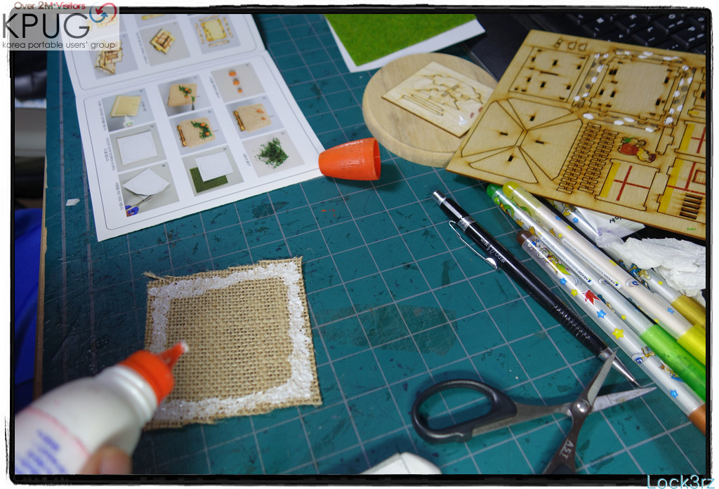 설명서대로 진행합니다. 지붕천의 올이 풀리지 않게 목공풀로 고정시키라고 하네요.