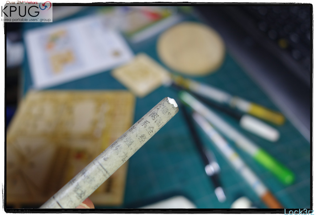 이제 집터 주춧돌 부분을 칠해야 하는데요. 비슷한 질감 느낌이 나는게 무엇이 있을까 찾아보니, 샤프의 반질반질함이 떠올랐습니다. ㅋㅋ