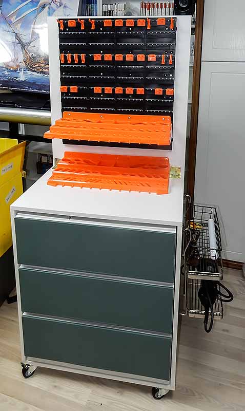 그동안에는 간이 공구대를 만들어서 써왔지만, 철망으로 만든 만듦새가 조잡하고 넘어질까 불안해서 그냥 새로 맞췄습니다.