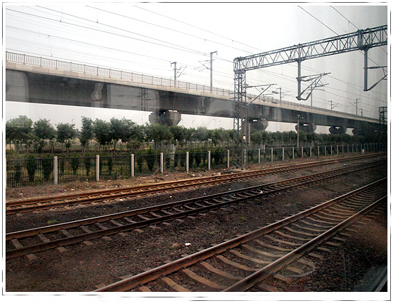 [창밖의 열차길 입니다. 고가에 있는 열차길은 고속열차 전용길로