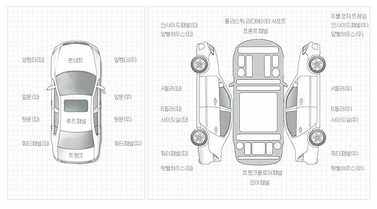 '양쪽 범퍼를 제외한 부분의 판금, 용접, 교환을 한 경우'