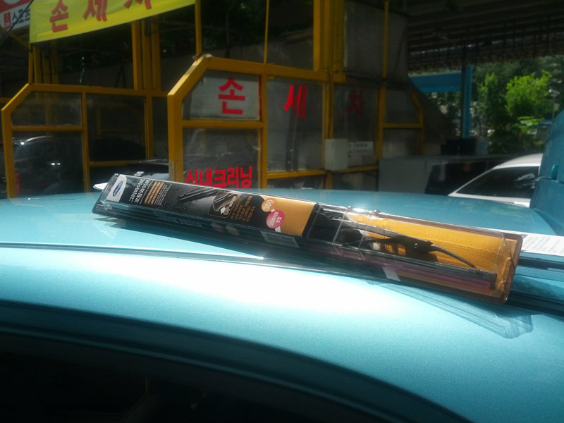 이걸로 세차는 일단 끝났지만, 여름이기에 와이퍼도 점검을 해줘야 합니다. 와이퍼는 소모품이기에 아무리 못해도 1년에 한 번은 바꿔야 합니다. 와이퍼는 차량마다 크기가 다른데, 보통 와이퍼를 사러가면 그 뒤에 차량 모델별 와이퍼 크기가 적혀 있습니다. 해치백이나 원박스, 쿠페인 경우 후면 유리창용 와이퍼도 있는데., 과거에는 범용 와이퍼를 썼지만, 지금은 전용 와이퍼를 고정해 놓습니다. 이런 경우 서비스센터(정비공장)에서 부품을 사서 바꿔야 하며, 그게 영 불편하다면 와이퍼 블레이드 고무만 사서 직접 바꿔도 됩니다.