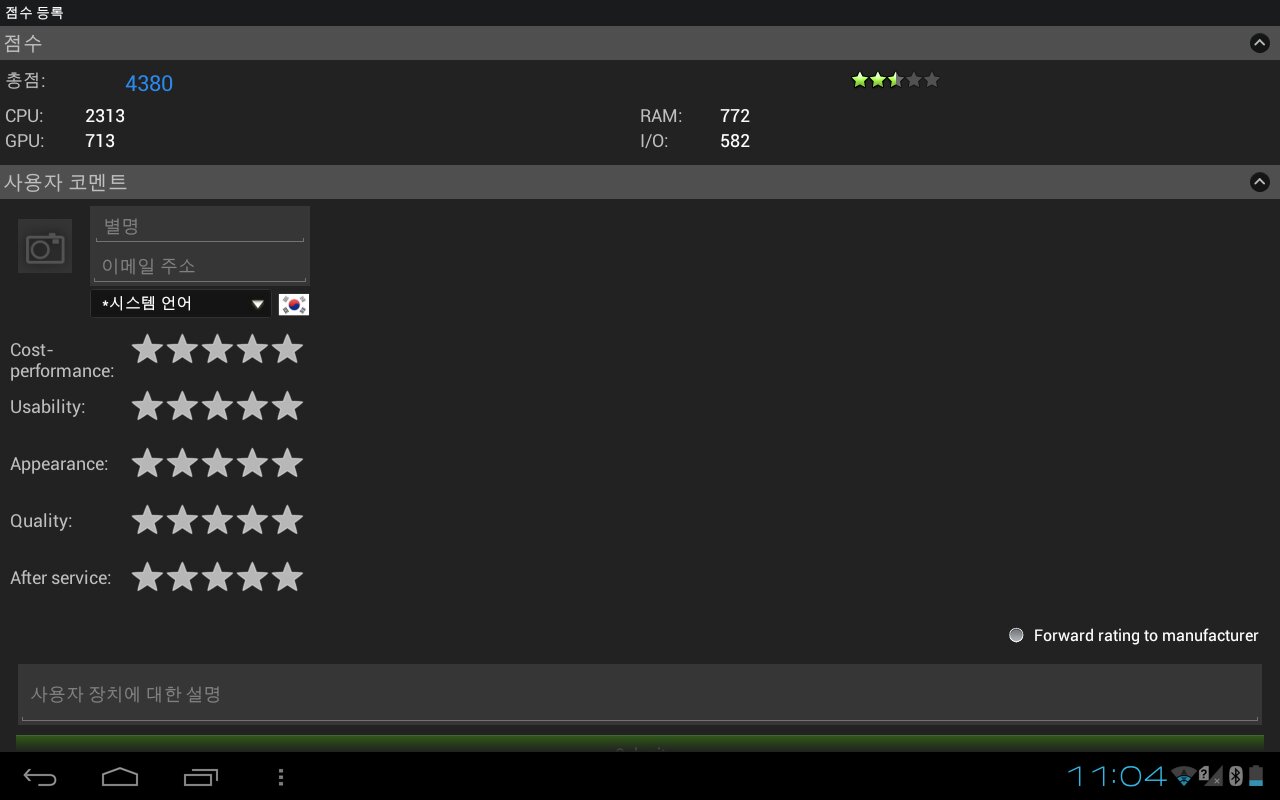 Antutu Score의 경우 4300-4600사이로
